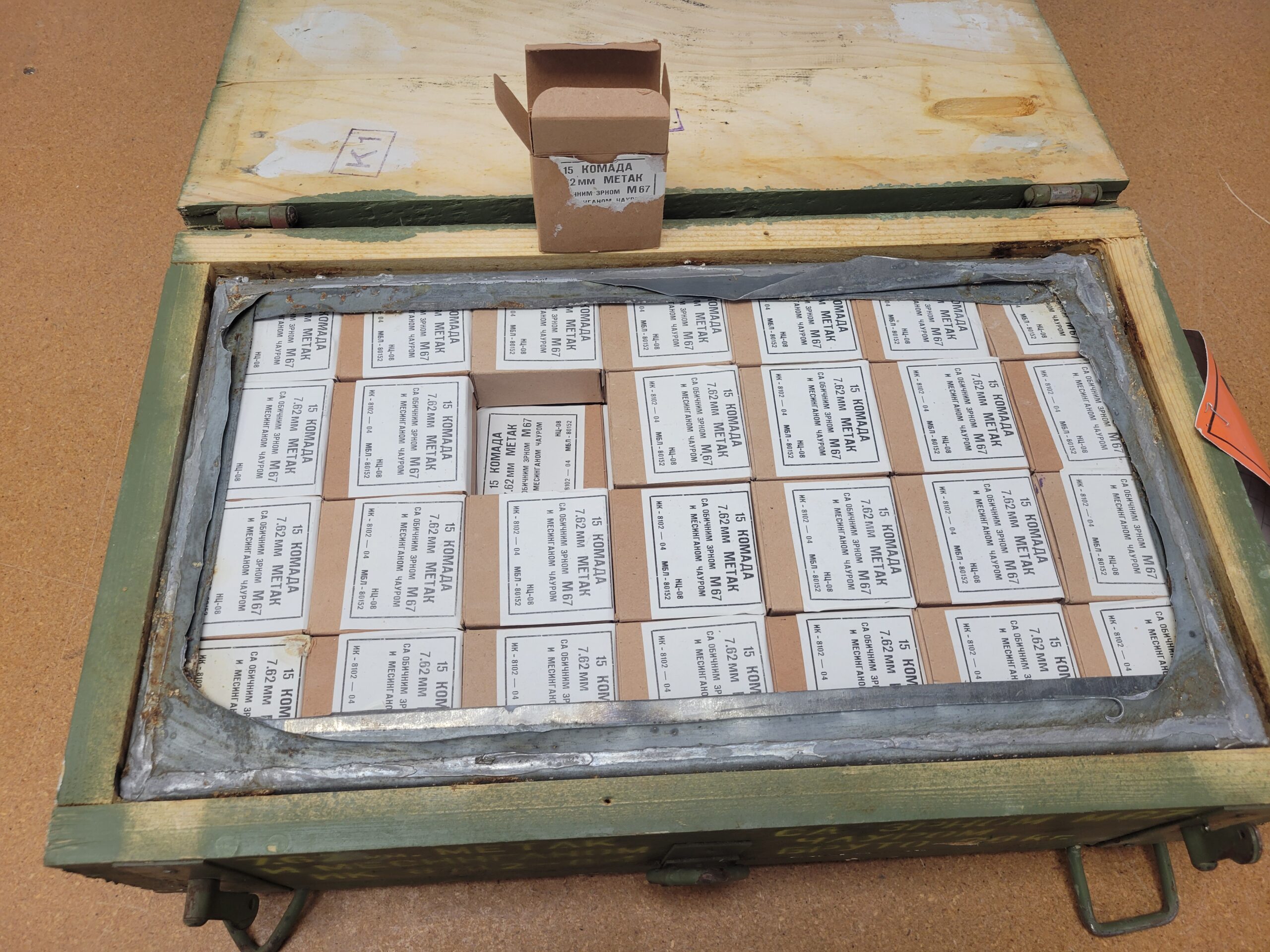 This ammo is Yugoslavian surplus M67 7.762×39 from 1980 to 1993 (the newest seen so far). The crate and ammo were produced by now modern day Igman in Bosnia. Cartridges have the headstamp and crate markings of “ИК”. Igman first began producing ammunition in 1950 when Joseph Broz Tito created the company and has continuously produced ammunition since its incorporation.